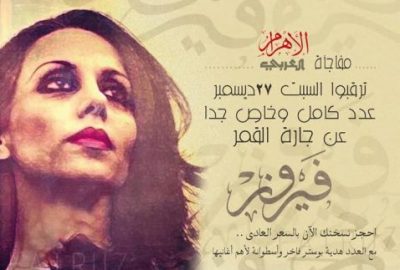 العدد الجديد من الأهرام العربي لن يزيد سعره عن الخمسة جنيهات وهو السعر العادي للمجلة، وسيتضمن “بوستر” فاخر لجارة القمر بالإضافة إلي اسطوانة لمجموعة أغانيها.