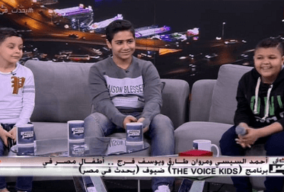 استضاف برنامج «يحدث في مصر» الذي يقدمه الإعلامي شريف عامر، ويذاع على فضائية «mbc مصر» اليوم الثلاثاء، 3 من نجوم برنامج «ذا فويس كيدز»، أحمد السيسي، ومروان طارق، ويوسف فرج.