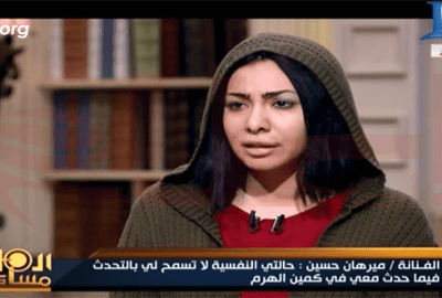 ظهرت الفنانة الشابة ميريهان حسين مع الاعلامي وائل الابراشي في الثانية من صباح اليوم الخميس حيث خرجت من قسم الشرطة الى ستديو دريم مباشرة.