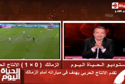 سخر الإعلامي تامر أمين، من هزيمة فريق نادي الزمالك، حيث قطع حديثه عن البرلمان وإسقاط عضوية توفيق عكاشة، ليُعلن عن دخول أول هدف في مرمى الزمالك، من قبل فريق الإنتاج الحربي.